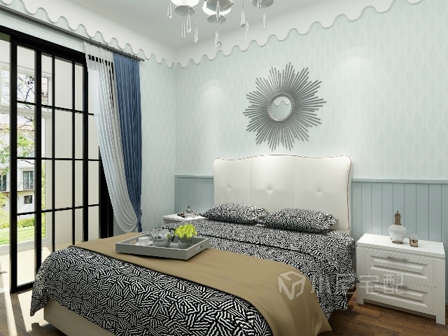 淡藍色臥室更加安靜溫馨,白色軟床舒適大氣。