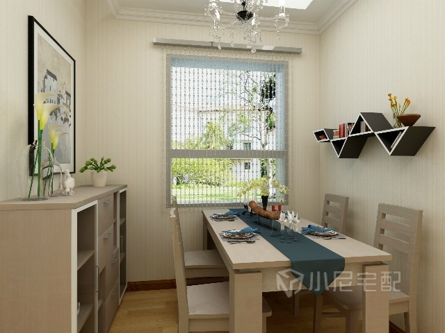 餐廳空間較小,利用餐邊柜進(jìn)行收納和裝飾,解決空間不足的收納問(wèn)題。