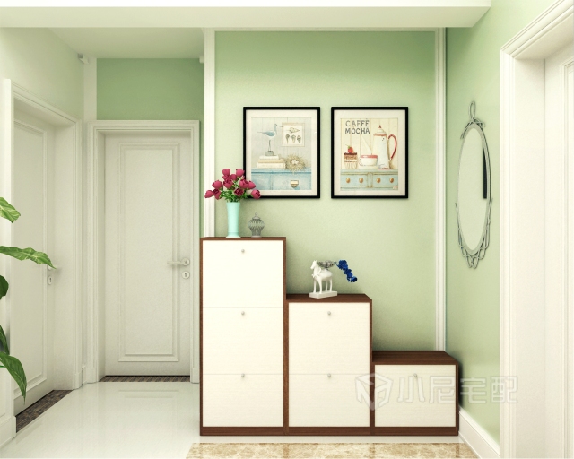 玄關(guān)一套組合鞋柜,一面歐式的鏡子,簡約的裝飾畫,讓人一進(jìn)門,自然清涼的感覺迎面而來。