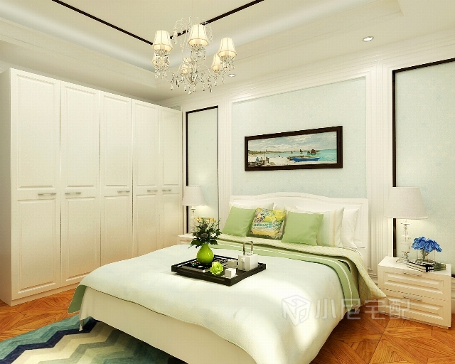 簡潔的背景墻,簡單的裝飾畫,臥室空間寬敞舒適。