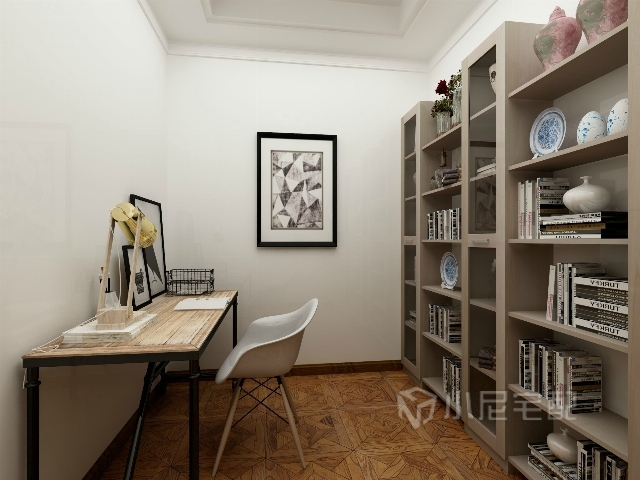 書房的空間較小,利用大書架,工業(yè)風的書桌,造型簡約大氣。