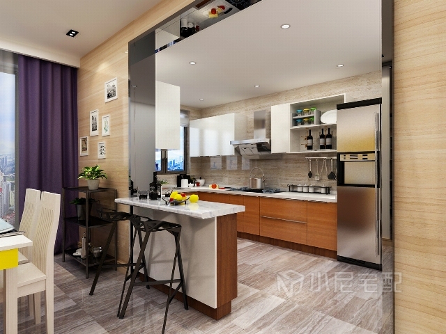 巧妙的用吧臺(tái)劃分餐廳和廚房的空間,不僅在視覺上多了延伸,還方便日常使用。