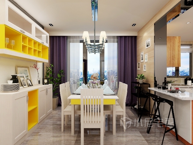 定制的餐邊柜增加儲(chǔ)物功能的同時(shí),擺放一些陳設(shè)品起到裝飾效果。