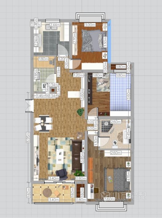 棕色的皮質(zhì)沙發(fā)和深紫色的絨布沙發(fā),不一樣的質(zhì)感給這個(gè)家?guī)聿灰粯拥钠肺丁?/pre>