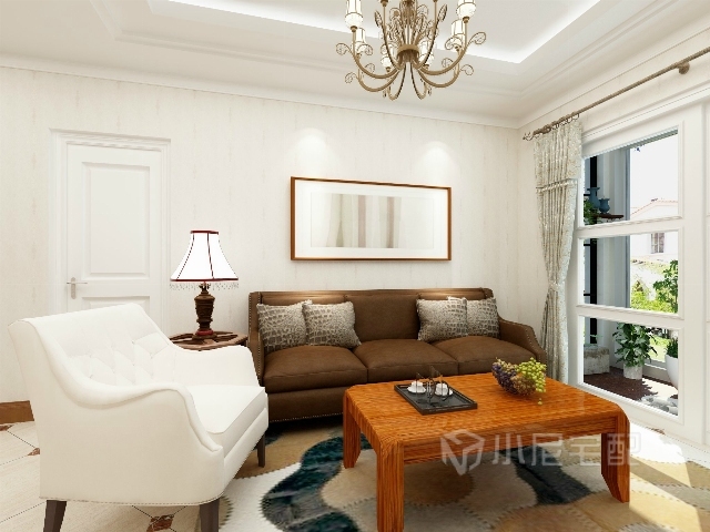 棕色布藝沙發(fā)搭配白色皮質(zhì)沙發(fā),休閑與高貴并存。
