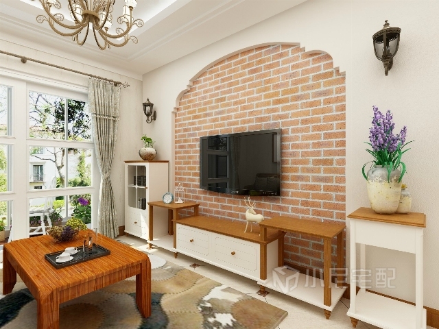 拱形造型背景墻,簡約的電視柜組合,有一點田園風(fēng)帶來的自然的氣息。