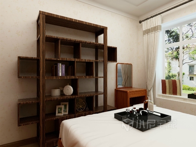 深色的大置物架,放一些收藏品和裝飾品,彰顯業(yè)主的品味和格調(diào)。