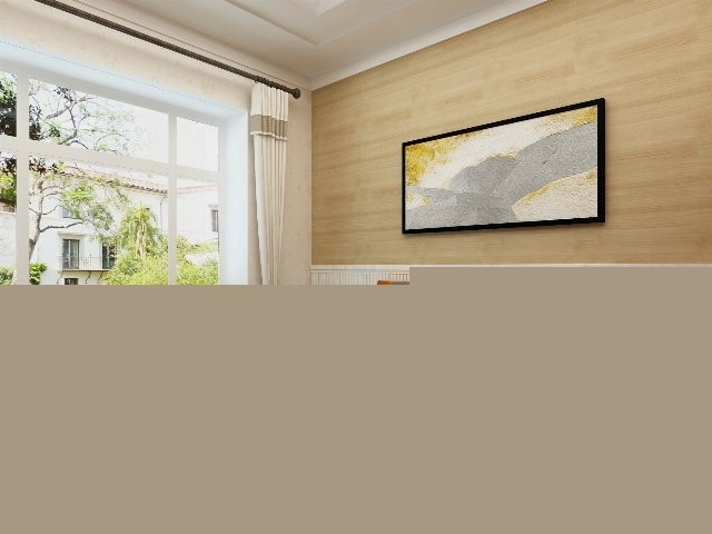 木飾面的背景墻搭配簡約的裝飾畫,顯得溫馨舒適,十分柔和。
