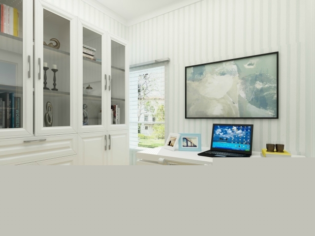 書房選用白色的書柜和書桌椅,淡淡的色彩讓眼睛倍感舒適。
