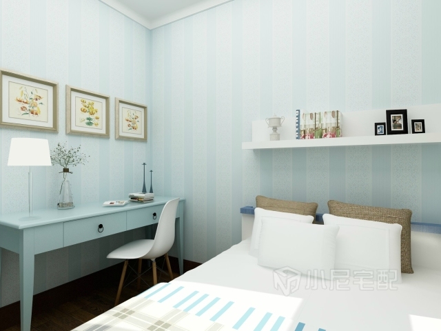 利用角落放一張藍(lán)色的小桌子,工作休息兩不誤。