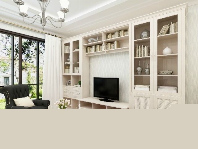 客廳很寬敞,在沙發(fā)后面做一套裝飾柜,既起到裝飾的作用,又增加儲(chǔ)物功能。