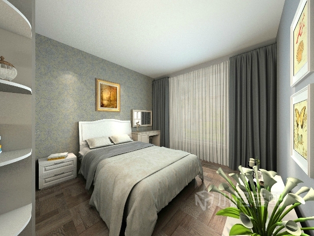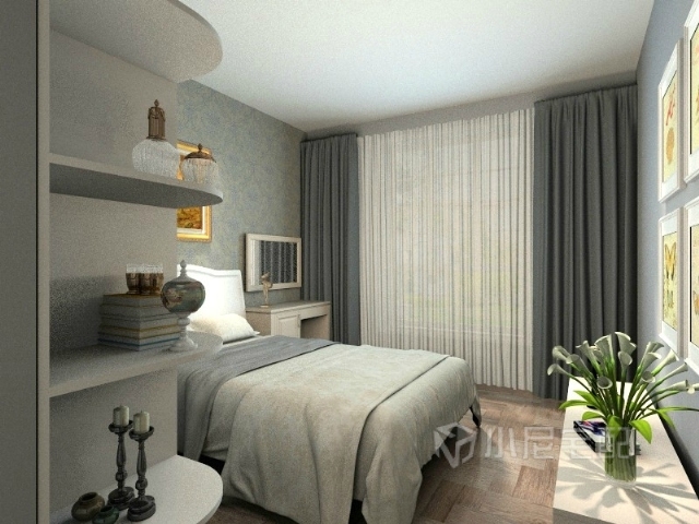 現(xiàn)代感的窗簾和舒適的床,還有漂亮的花,給人以溫馨的映象。