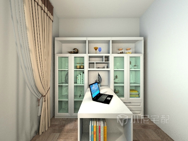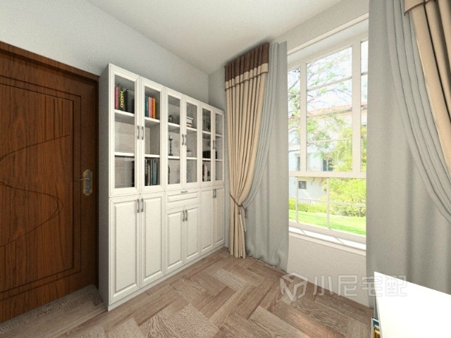 簡約整齊而實(shí)用的書柜,長長的寫字臺,讀書也好有歡暢淋漓的感覺。