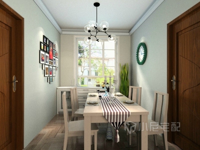 簡潔明快的餐廳,再加一綠植和有些許懷舊的照片,給人一清新的映象。