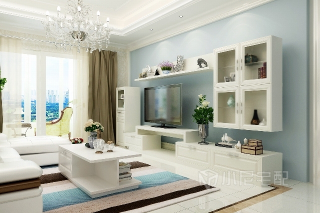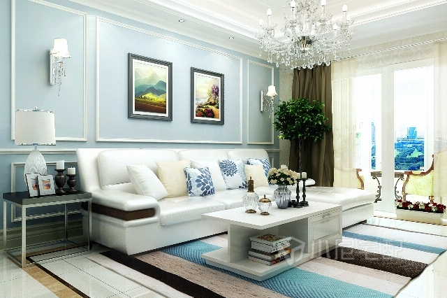 簡(jiǎn)潔的石膏線造型,白色皮質(zhì)沙發(fā),不同的材質(zhì)帶來(lái)不同的質(zhì)感體驗(yàn)。