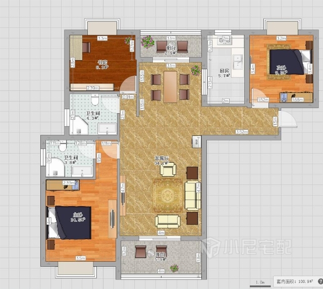 暖色的墻紙和裝飾,顯得溫馨舒適。