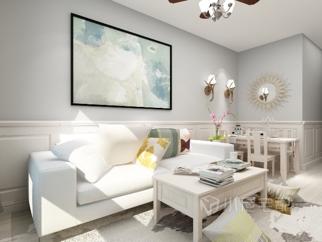 客廳內(nèi)采用了墻裙的設(shè)計,高端品位一下子就出來了