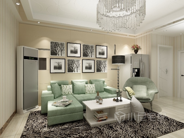 客廳采用了小面積的鏡面材質(zhì),現(xiàn)代的氣息撲面而來
