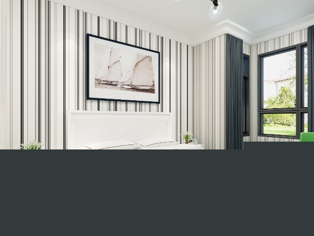 臥室采用黑白條紋墻紙,整個(gè)空間的質(zhì)感提升了起來