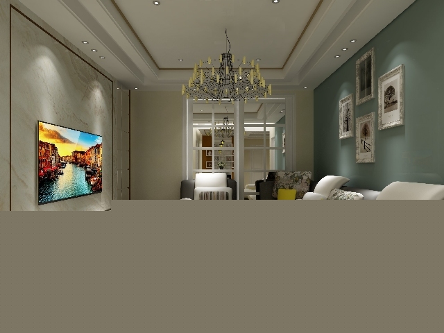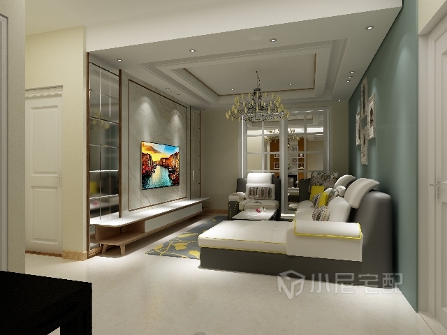 沙發(fā)、天花板用統(tǒng)一色調(diào),在搭配一些綠色壁紙為襯托,使居室充滿愜意、輕松氣氛。