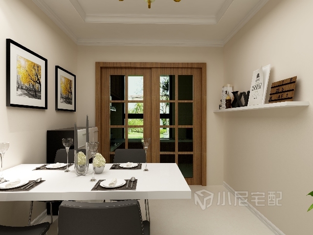 簡(jiǎn)單實(shí)用的餐廳,餐邊擱板即可儲(chǔ)物又美觀,使人覺得賞心悅目