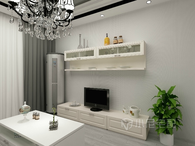電視背景墻沒有做造型,淡灰色墻面搭配維度系列電視柜,簡(jiǎn)單大方,有足夠的儲(chǔ)物空間。