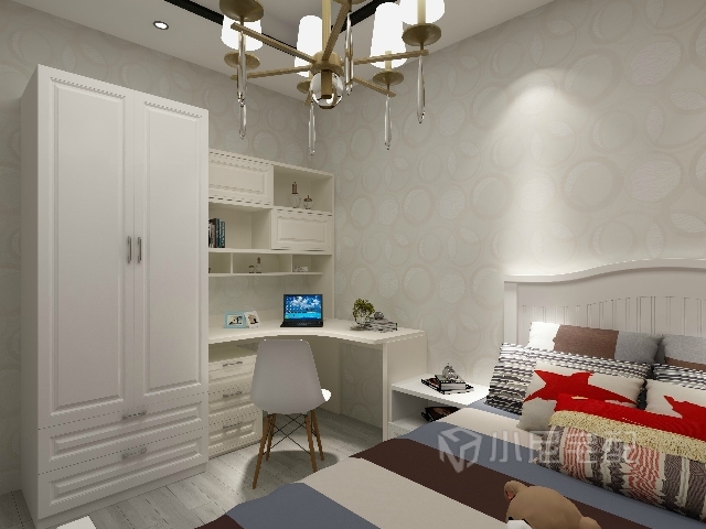 兒童房配有衣柜和轉(zhuǎn)角書桌,具有充足的儲(chǔ)物空間。