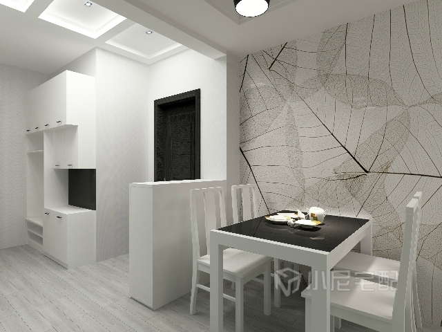 餐廳空間并不大,沒有做復(fù)雜的造型墻,只是用了素雅的壁紙點(diǎn)綴。