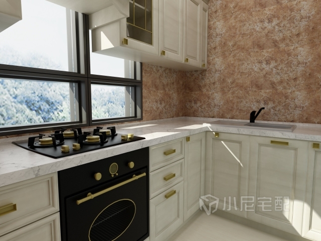 歐風(fēng)格廚房裝修在顏色上以白色為主。整個廚房沒有加入多余的顏色點綴,也沒有華麗的裝飾。