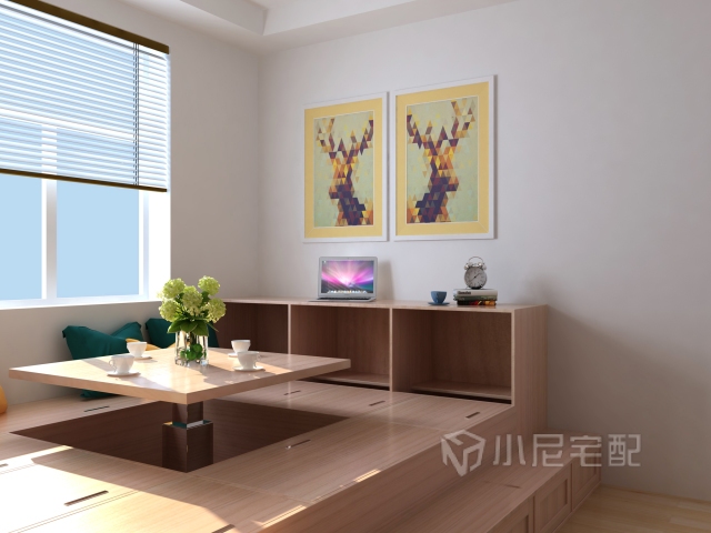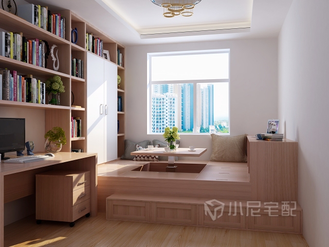 榻榻米加上實(shí)用的電腦桌,讓整個(gè)書房有閑適。