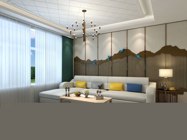 沙發(fā)背景墻古色古香,韻味十足。