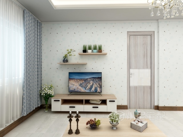 電視背景墻簡約時尚,搭配綠色的植物使整個空間充滿生機(jī)