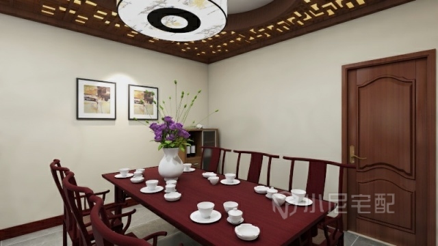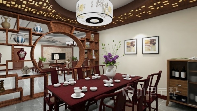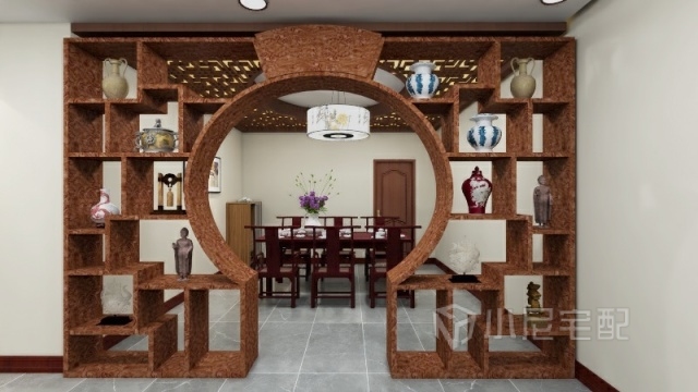 餐廳運用的是以紅木材質(zhì)為主隔斷屏風