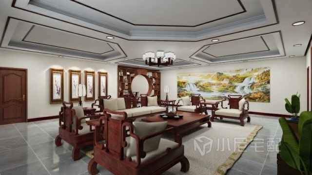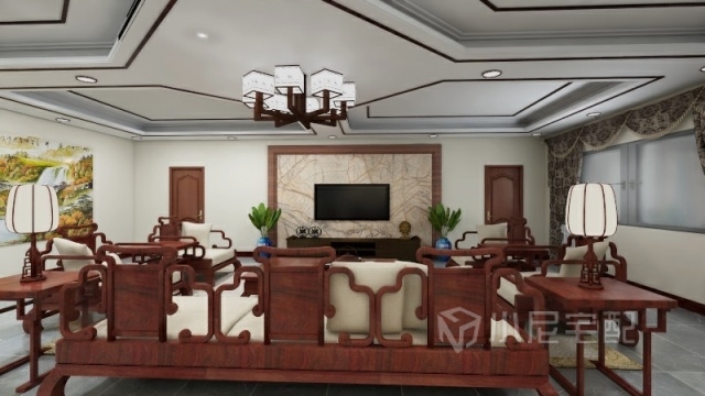 客廳運用的是紅木材質(zhì)家具 低調(diào)沉穩(wěn) 更能凸顯業(yè)主的身份以及品味