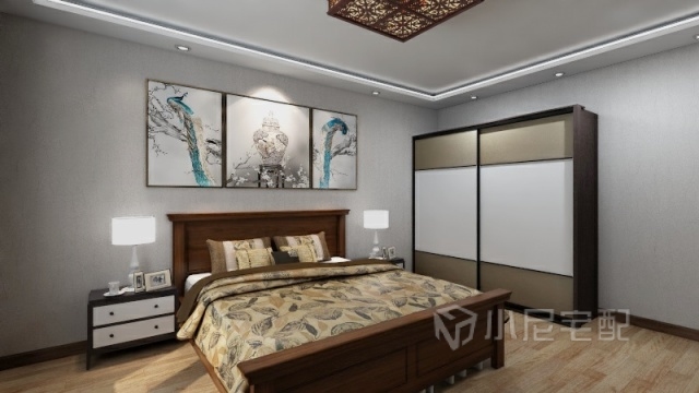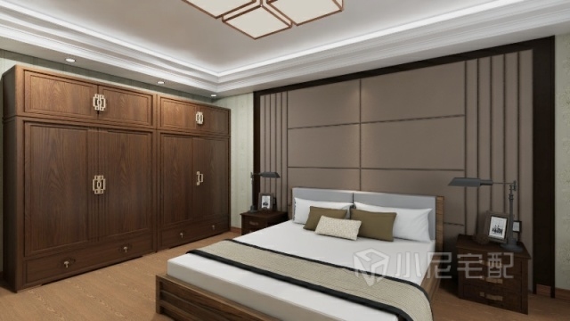 此臥室運用的新中式風格 清新典雅 打破了傳統(tǒng)中式氣息 不會造成審美疲勞
