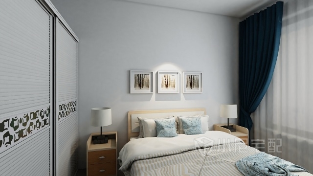 主臥空間里推拉門衣柜加床,給人一種簡單的感覺