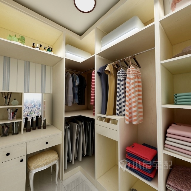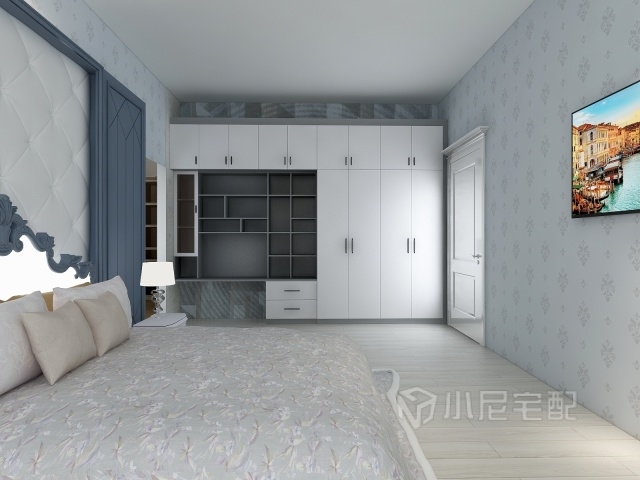 主臥白色衣柜搭配灰色布紋梳妝臺(tái)