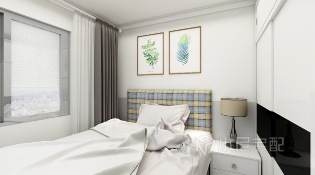 次臥 按照客戶要求格子紋路床頭 通頂衣柜