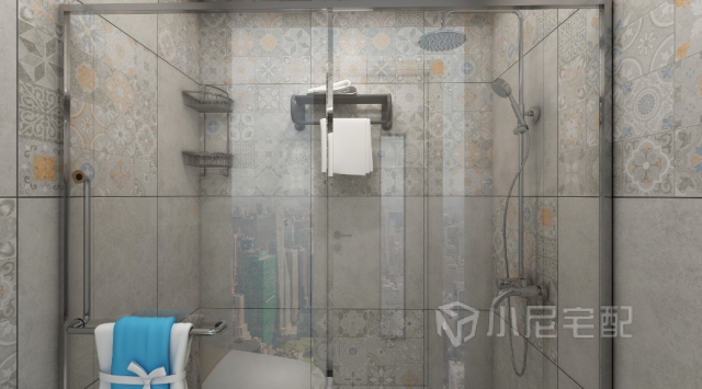衛(wèi)生間 布滿幾何圖形的墻磚讓衛(wèi)生間不再單調(diào)。