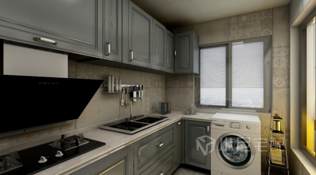 廚房將原有洗衣房與廚房合并,最大化實(shí)用空間。