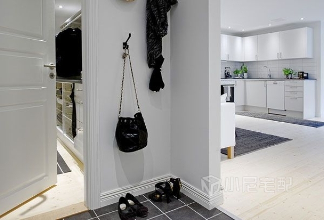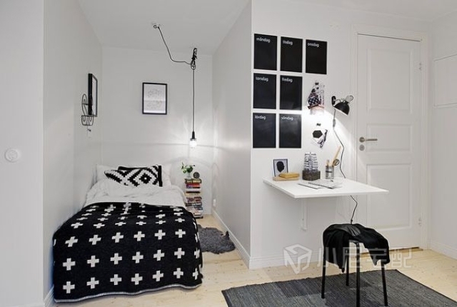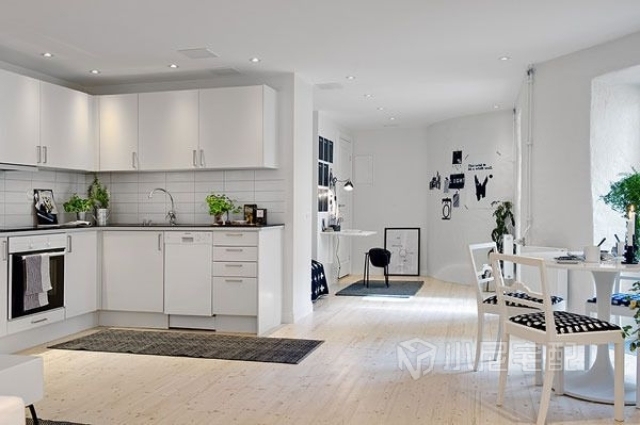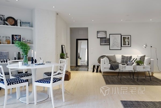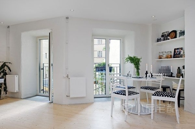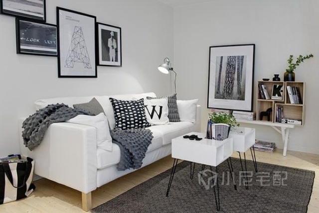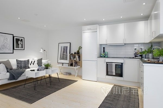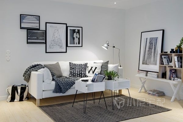 這套案例很有北歐瑞典風情,全屋選用白色為主色調,讓空間增加寬敞感。家具幾乎全部為黑白(灰)搭配,對比效果明顯。家具造型簡單,突出硬朗的線條,給人干凈利落的感覺,突出主人時尚的生活品味。白色給人潔凈明朗的感覺,同時還能增強空間感??蛷d配備了充足的燈飾,采光條件極好。簡單的沙發(fā),特色小茶幾,組合黑白相框,讓客廳充滿時尚個性。