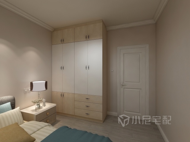 主臥室的大衣柜到頂設(shè)計(jì),可以多多增加儲(chǔ)物空間。