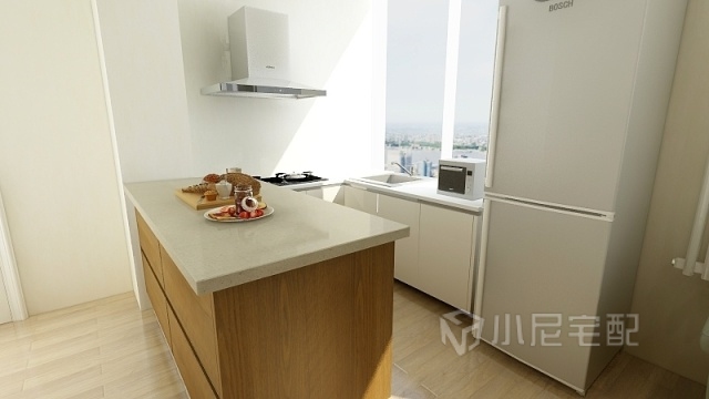 開放式的廚房設(shè)計、三角區(qū)域的空間劃分,操作更加開闊的同時也顯得格外時尚