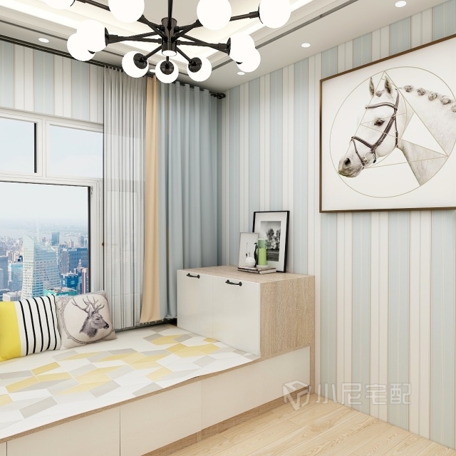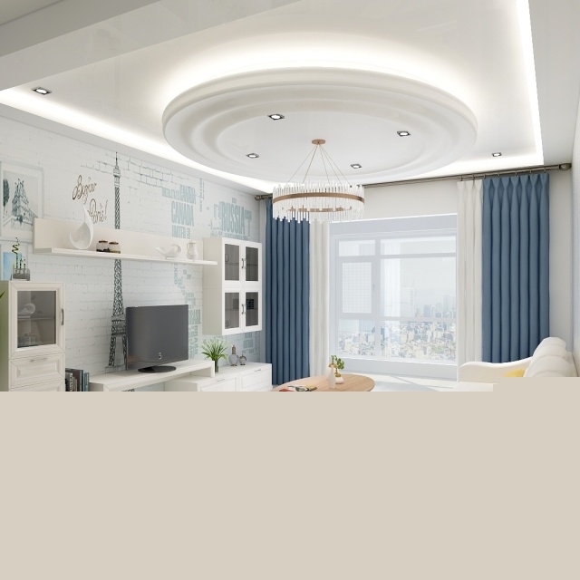 客廳白色搭配深藍色窗簾,給人一個好心情