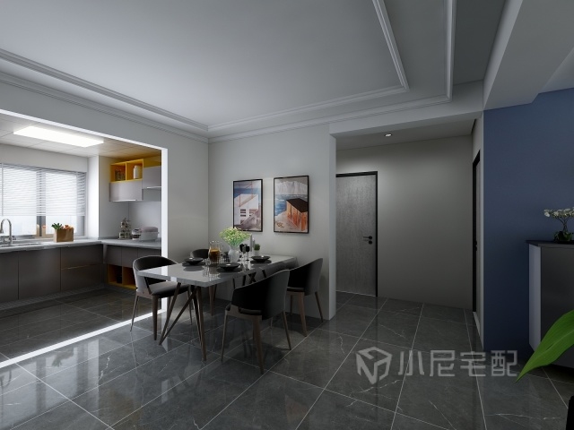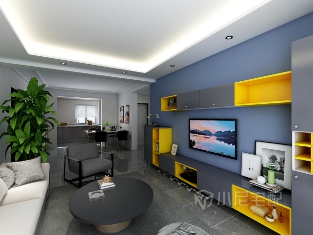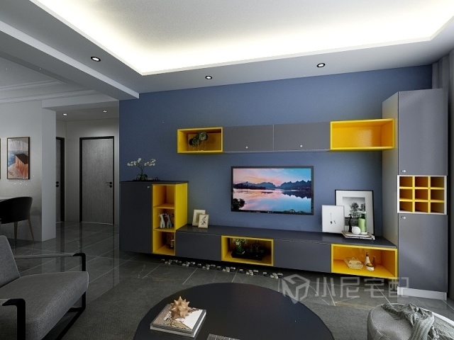 客廳 用深色和檸檬黃進行搭配,簡單明快,