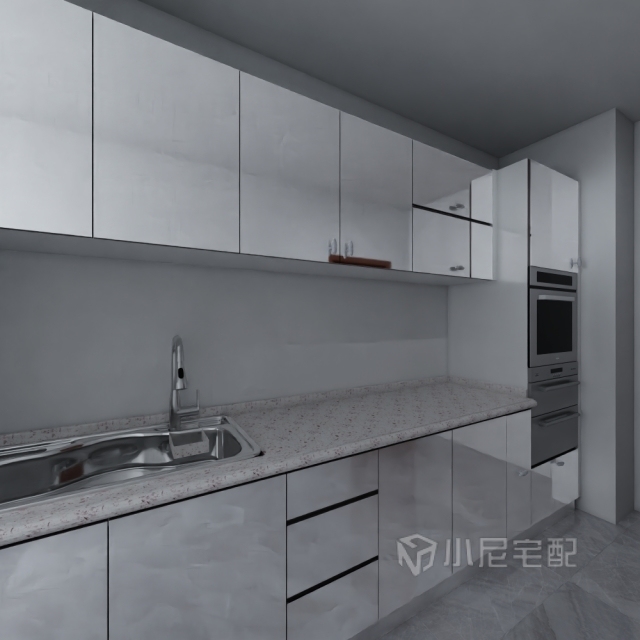 烤漆的無拉手門板,讓整個(gè)廚房顯得很簡單