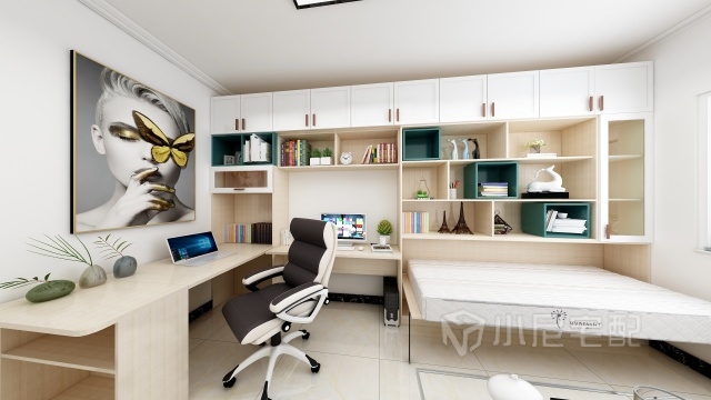 書房這個房間功能可強大了 折疊式書桌 增強了工作場地 收起來也是收納性很強的書柜并節(jié)省了書房的空間 還有側(cè)翻床也是一樣 既是書房又是客房 幫幫噠