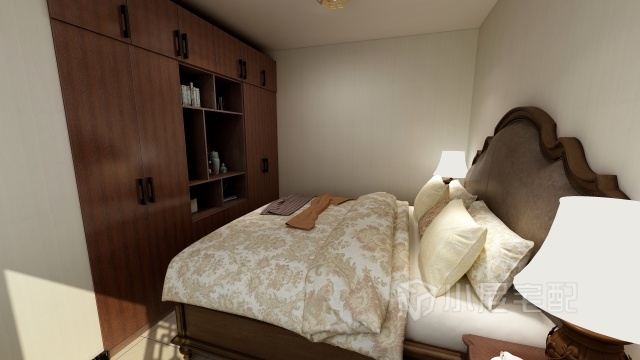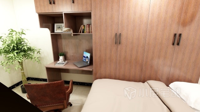 次臥加入了定制家具,在床尾處的衣柜不能能滿足儲物需要還可以滿足在床上看電視等娛樂需求。