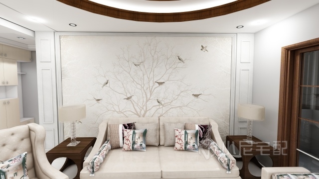客廳的中式吊頂,簡(jiǎn)單背景墻整體給人我就是自己建了個(gè)別墅奧