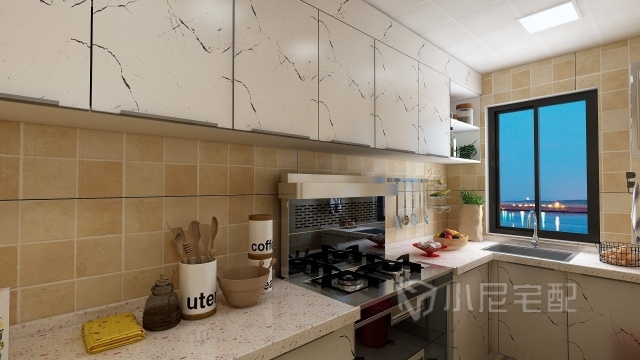 L型設計多用于空間狹長的廚房,這樣方便廚房家電的合理布局,并且還能留下相對充足的活動空間。